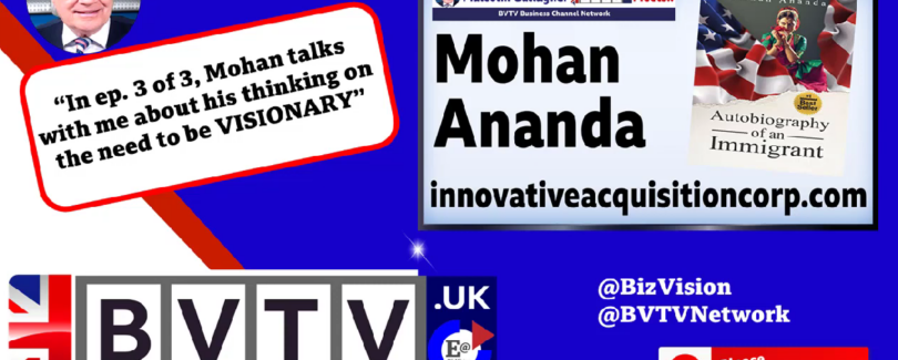 Ep. 3 of 3 BVTV Trilogy with Billion Dollar Entrepreneur Mohan Ananda -why visionary is important BVTV Visionary Entrepreneur Channel host Malcolm Gallagher says; Welcome, to the BVTV Network coming to you from the UK …